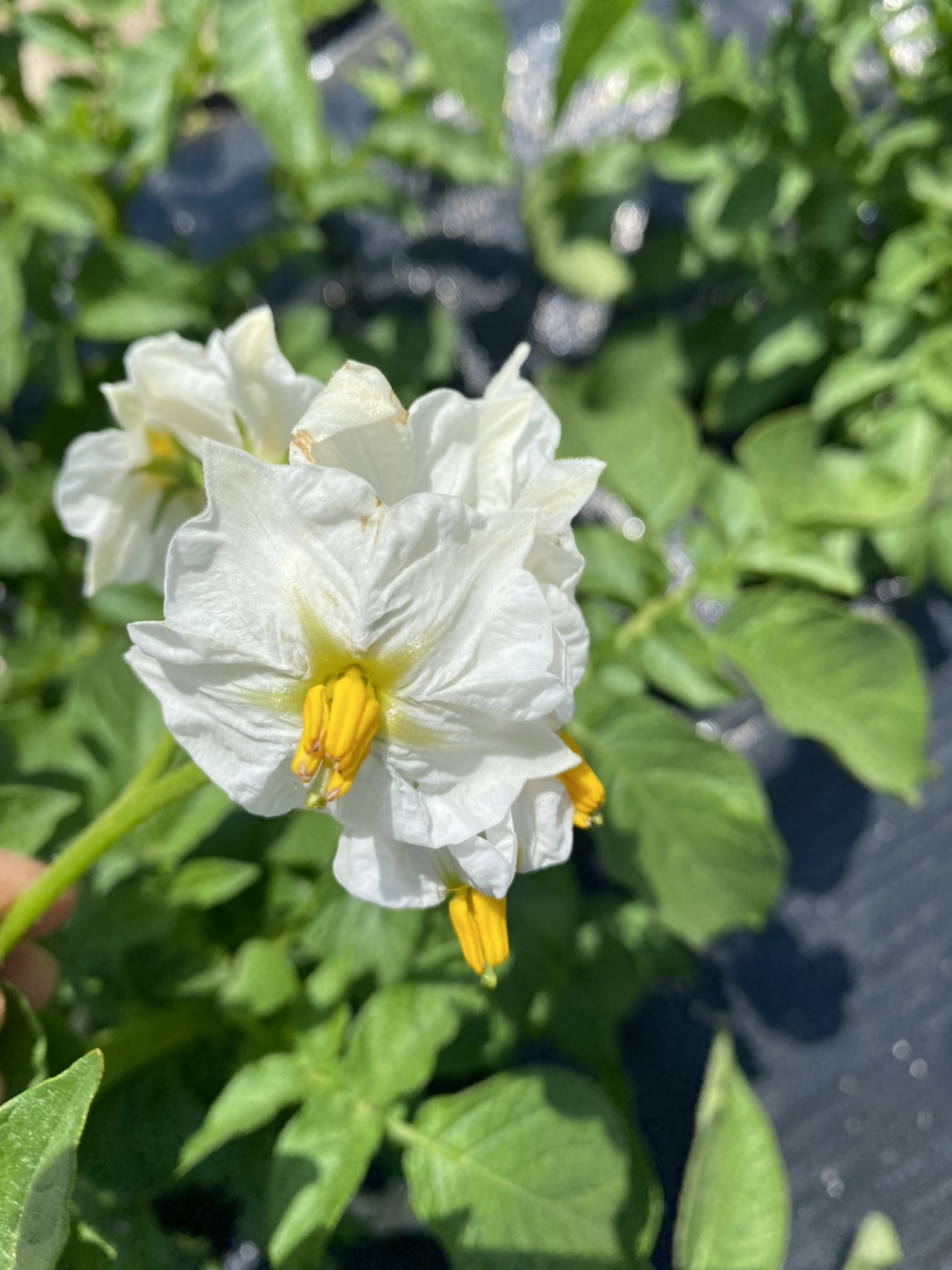 감자꽃 필 무렵이면 꼭 차를 타고 지나가면서 너른 감자 들판을 보며 아이들에게 외친다. 왼쪽을 봐, 오른쪽을 봐. 검정 비닐은 온데간데 안 보이고 비닐을 다 덮은 초록 감자 잎사귀가 그새 너른 들을 가득 채웠다. 난쟁이 초록 잎들 사이로 하얀 별빛 마냥 콕콕 감자꽃이 박혔다. 이 풍경이 너무 좋다. 아이들에게 다시 외친다. (주의! 우리 밭 아님)