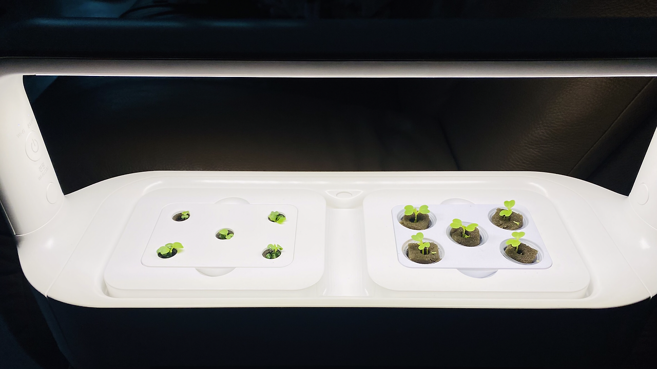 소파 옆 작은 모서리 탁자에는 원두 가는 기계가 있었습니다. 주말에 가끔 우리의 커피를 책임지는 기계였지요. 남편은 과감히 그라인더를 치웠습니다. 커피는 그냥 드립 백으로 마시려나 했습니다. 애정하는 커피 기계를 치우고 그 자리에 수경재배기 하나를 놓았습니다.