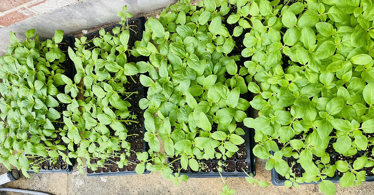 맨땅을 지나 검정비닐 멀칭을 해놓은 이랑 두 개가 있다. 6월 29일, 참깨 모종을 심었다. 모종판에 모여있을 때는 건강해 보이던 참깨가 혼자 서 있을 수 있으려나 걱정이 될 정도로 비실비실해 보였다. 모종판이 너무 커 작물에 맞는 모종판을 사용해야 한다는 사실도 알았다. 뿌리가 다 끊겨서 나오는 건 버려야 했다. 옥수수도 너무 넓은 데 심어서 그러더니 처음 하는 일은 실수가 있기 마련이다. 괜찮다. 그러면서 배우는 거다. 비는 곳, 모자란 모종은 육묘장에서 파는 외대 참깨를 사 오기로 했다. 우리가 키워 심은 참깨는 다분지 참깨다.