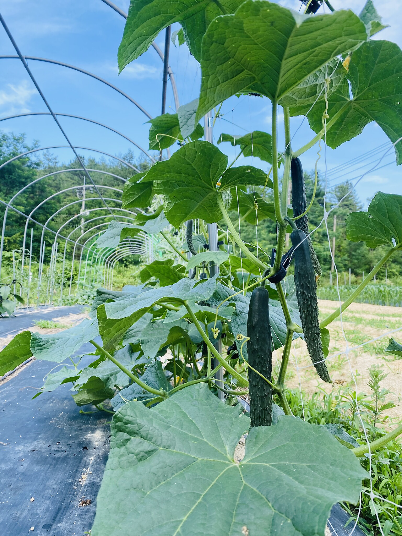 풀을 매는 생강밭 왼편에는 터널이 있다. 청오이, 백오이가 터널을 따라 올라가며 줄기를 뻗어가고 있다. 오이 철이다. 하루 열 개씩도 수확을 한다. 오이 좋아하는 어머님도 가져다 드리고 언니도 가져다주고 우리는 매일 잘라서 생으로 먹는다. 우리 집은 둘째 복이 빼고는 모두 오이를 잘 먹는다. 나도 안 좋아했었는데 올해 오이는 유난히 달다. 물을 잘 줘서 그런가? 오이를 수확할 때 물을 안 주면 쓴맛이 난다고 한다. 나는 그 쓴맛이 정말 싫다.