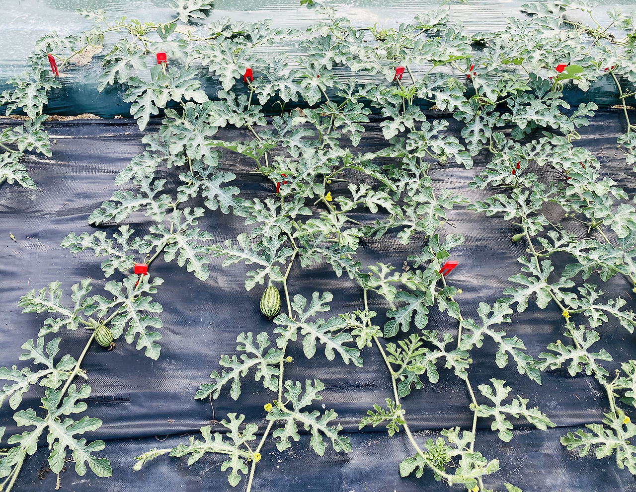 앞쪽은 수박밭이다. 수박은 바닥에 긴 줄을 늘어뜨렸다. 암꽃이 줄기마다 노랗게 달렸는데 수꽃이 없다며 볼멘소리를 하던 남편. 수꽃이 피어나자 안 벌어진 수꽃의 꽃잎을 벌려 암꽃에게 강제로! 비벼 주었다. 성공적으로 아기 주먹보다 큰 열매를 하나씩 달았다. 한꺼번에 수정이 되면 한꺼번에 수박이 나올 텐데 그것 또한 걱정이다. 그래서 새로운 마디에 꽃이 피면 아래 달린 열매는 몇 개 따 준다고 했다.