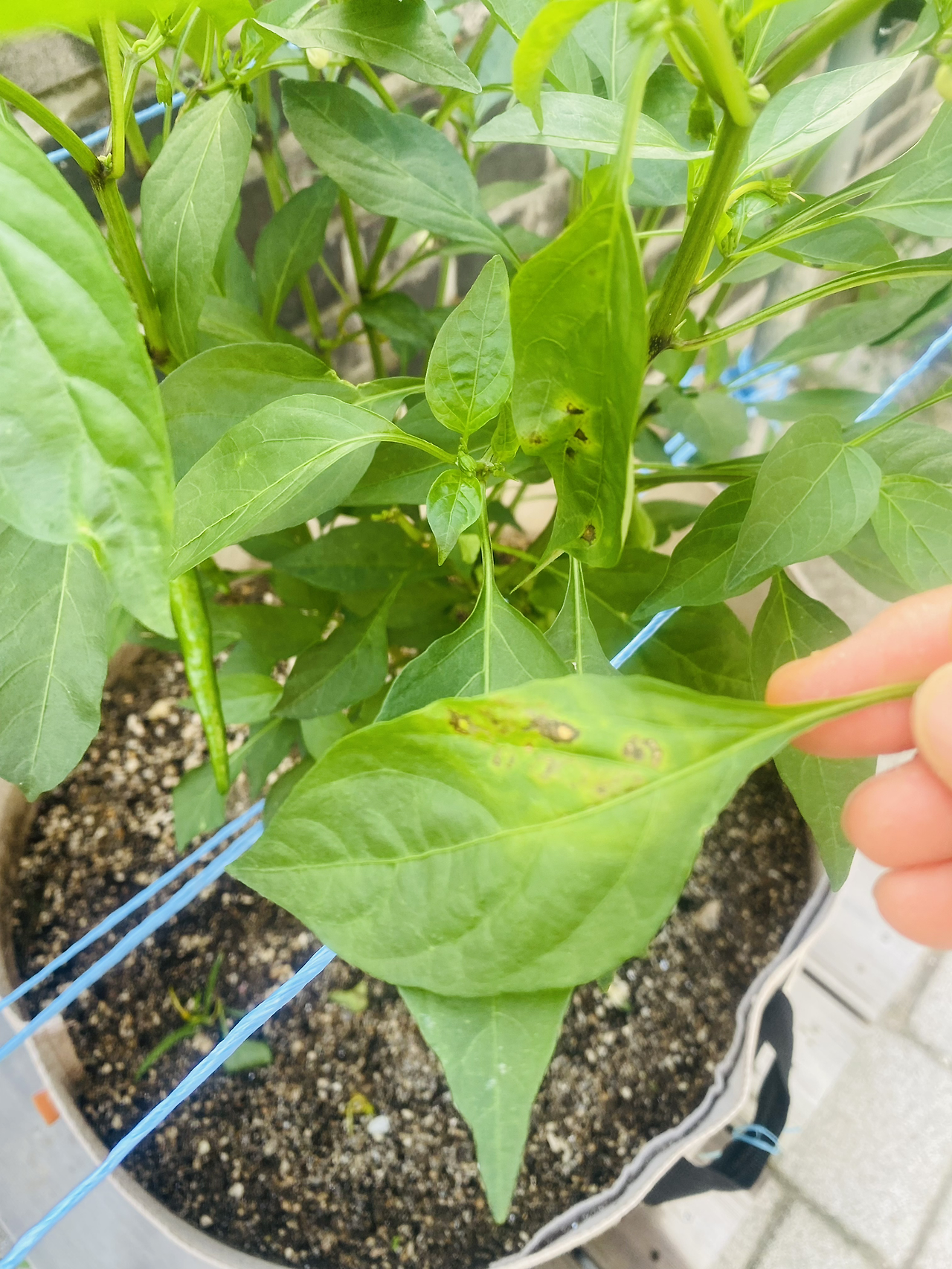 고춧잎에 노랗고 검은 점이 생겼다.