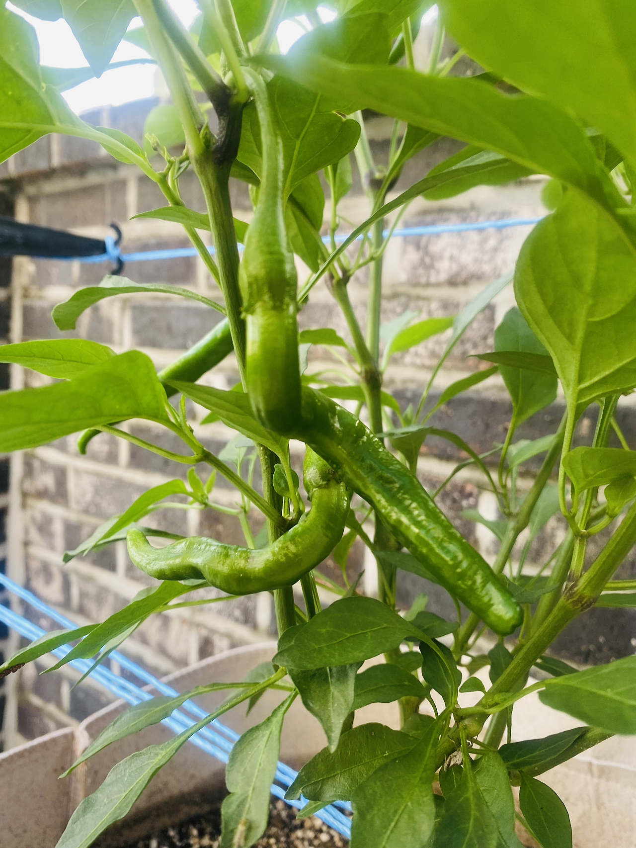 기다랗게 쭉쭉 뻗은 고추가 두 개