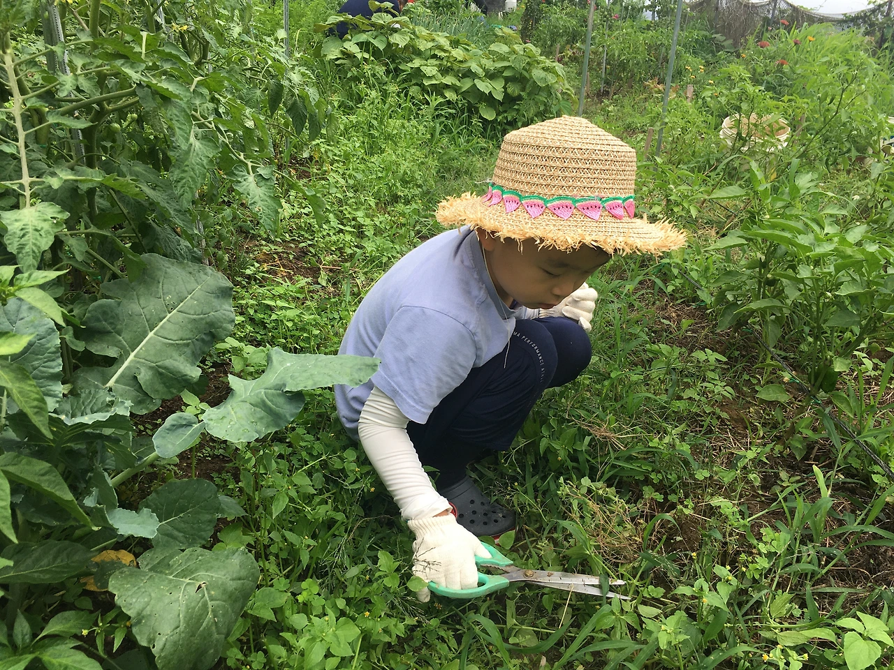 무조건 잡초는 자르거나 뽑기로 하고, 아이들의 손에도 가위를 들려주었다.
