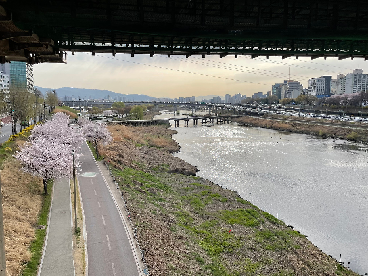 뚝섬역과 한양대역 사이에는 중랑천이 있다. 귀에 에어팟을 꽂고 한숨을 한 번 크게 쉬고 중랑천을 바라보며 걷는다. 봄에는 벚꽃을 보며, 날씨 좋은 날엔 바지런히 자전거를 타는 사람들을 보며 어느 날은 중랑천에 비친 윤슬을 보며 한 줄로 길게 늘어진 차들을 보며 그렇게 걷는다.