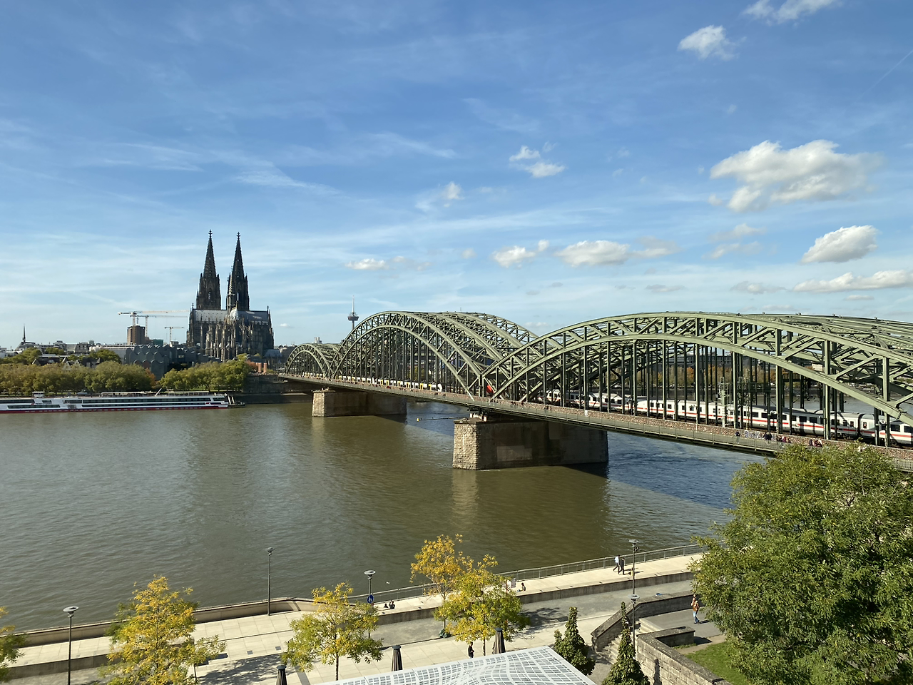 예약했던 숙소는 강을 끼고 쾰른 대성당이 바로 맞은편에 보이는 숙소. 다만 우리가 예약한 방은 성당이 보이지 않는다며 추가 차지를 하고 룸 업그레이드를 할지 묻는다. 고민을 했지만 성당 보러 온 거였고, 아이도 나도 에너지가 없으니 방에서라도 잘 보자 싶어서 업그레이드. 문을 열고 들어가니 너무나도 황홀하게 쾰른 대성당이 펼쳐진다.