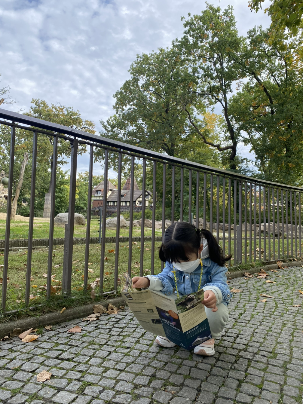 우리 아이는 지도와 리플릿을 참 좋아해서 방문하는 여행지마다 꼭 챙겨서 모아두곤 하는데, 이번 베를린 동물원에서도 역시나 야무지게 지도를 들고 길을 찾아 나선다. 엄마아빠는 한 줄 기차가 되어 본인 뒤를 따라오라고.. 이럴 때 보면 영락없는 아이같기도 하고ㅎ