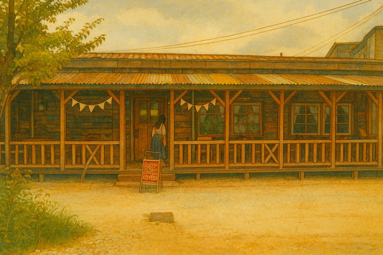 내 눈엔 딱 곽사장 스타일이다. 카페 안은 가보지 못한 텍사스를 연상시키는 카우보이 모자, 인형들, 장식들 또 수더분한 여사장님이 정겹게 맞아주신다. 꼬부랑 할머니를 제일 좋은 자리로 보내주셨다.