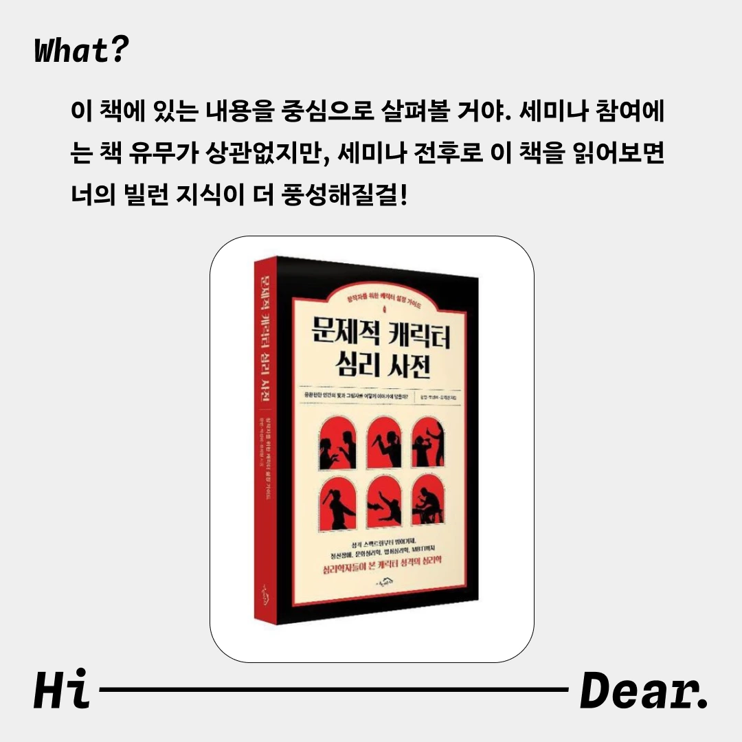 목요일 저녁마다 만나는 거야. 심리학으로 내 주변에 있는 빌런을 함께 찾아보자고.