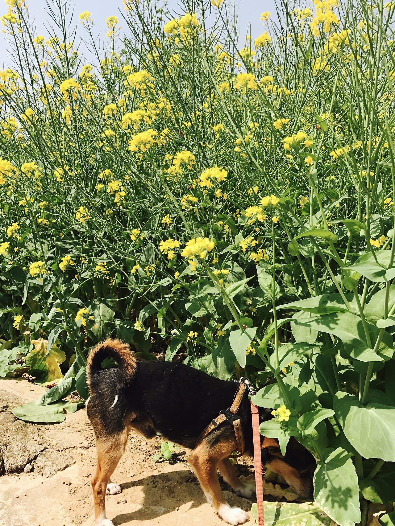 아빠엄마는 어쩐 일인지 곰돌이에게 조금 먼 마음을 주고 계신다. 다시 눈물을 흘리며 가을이를 보내던 그 마음이 생기지 않길 바라시는 거 같기도 하다. 곰돌이는 집이 아닌 집 앞 밭에 개집을 놓아두셨고 그 거리만큼 조금 멀리 이뻐하신다. 아무리 그래도 그 마음은 멀지 않아 아빠는 곰돌이를 이리저리 자랑하고 싶어 하시고 똥개라도 귀엽게 산책하고 싶어 예쁜 목줄을 사주셨다. 안타깝게도 곰돌이는 몇 달 뒤 어마어마하게 커져서 산책을 데리고 가는 게 아니라 끌어 다닐 수밖에 없게 폭풍성장을 하였다.