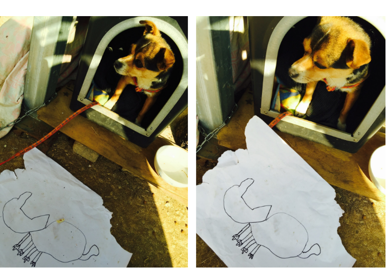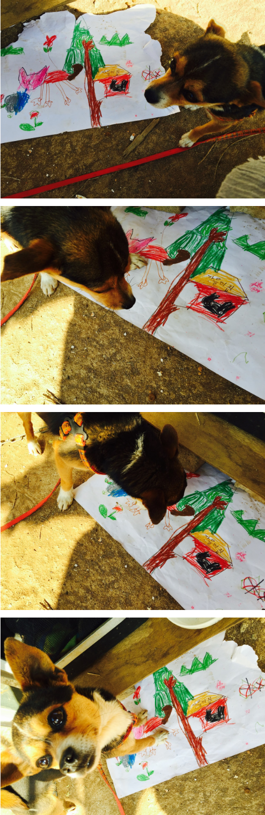 시골에서 키우는 개는 대부분 커다랗기에 애완견이 집을 지키는 것은 드물지도 모른다. 아빠가 정성스럽게 나무 하나하나를 고르고 골라 발품 팔아 자재를 얻어 지은 부모님의 한옥집엔 언제나 단풍 물이 든 것 같은 삼색의 치와와가 쩌렁쩌렁 존재감을 뿜어내고 있었다. 동네 사람들은 엄마가 좋아 찡찡대는 가을이를 아가 같다 말했고 할머니들은 “자는 왜 안크냐” 고 물어댔다. 시골에서 코 흘리며 뛰어다니며 자라나고 있던 꼬마자매들은 가을이가 세상에서 제일 좋다는 핑계로 아빠엄마의 한옥집을 들락거리며 얼마나 좋은지 도화지에 가을이를 새기고 담아 그림을 그려주곤 했다.