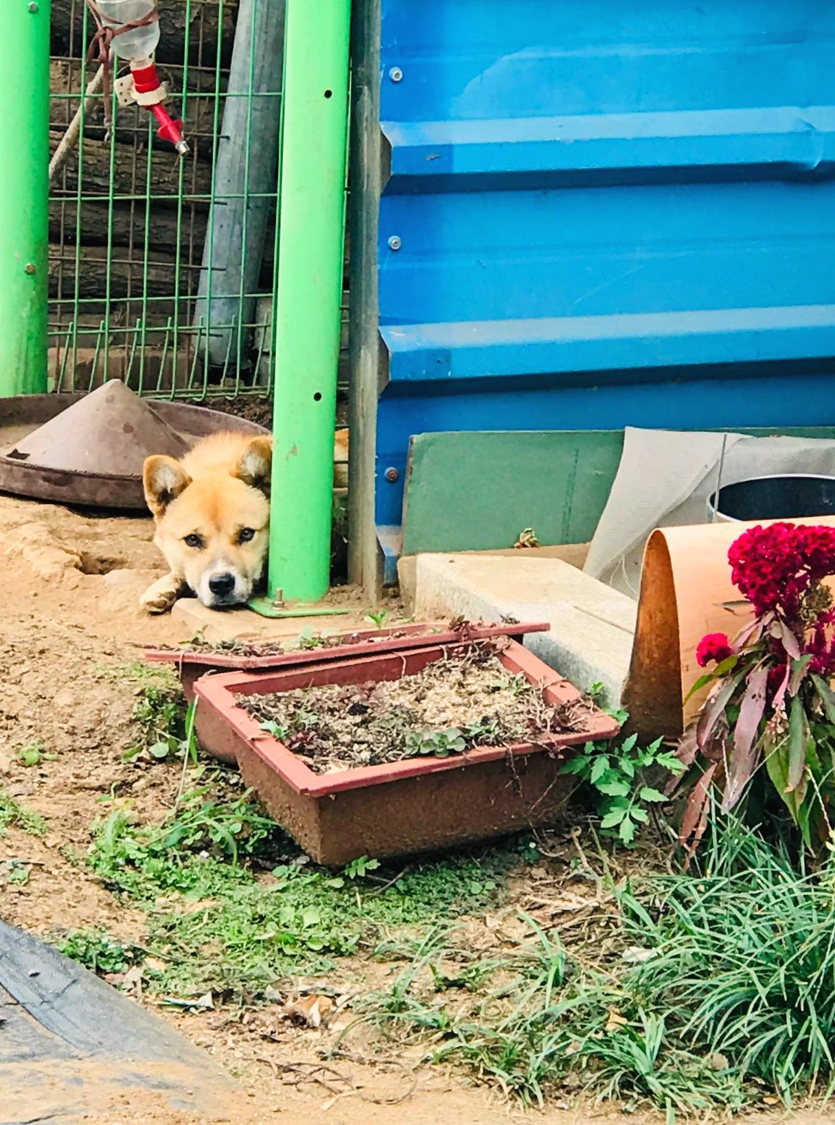 그렇게 바보라고 말하면서도 얼굴에는 싱글벙글이 한창이던 아빠와 시간이지나 이제는 집밖에서 키우겠다고 내놓으면서도 걱정이 한가득인 엄마는 빵글이의 공간으로 펜스까지 치며 요란한 전동드라이버 소리를 내고 문을달고 카펫을 깔아놓고 다음으로 물마시는 장치를 달아놓고는 그 홀짝거리며 목마름을 해결하는 빵글이의 모습이 얼마나, 어찌나, 귀여운지 봤느냐고_ 성화를 부리셨다. 앞집의 친척오빠는 집에 내려왔다가 그런 우리아빠엄마의 마당을 둘러보고는 뭐 개 하나 키우면서 그 개의 집으로 펜스를 다 사서 시공해 놨다며 요란하다 - 하였지만 엄마는 이전에 습격을 당했던 가을이처럼 또 그런일이 일어나지 않을리 없다며 철저하게 대비해야 한다며 이깟 펜스정도로는 어쩌면 가당치도 않을지도 모른다며 아빠와함께 빵글이의 공간을 어찌하면 더 안전하게 만들지 고민 뿐이셨다.