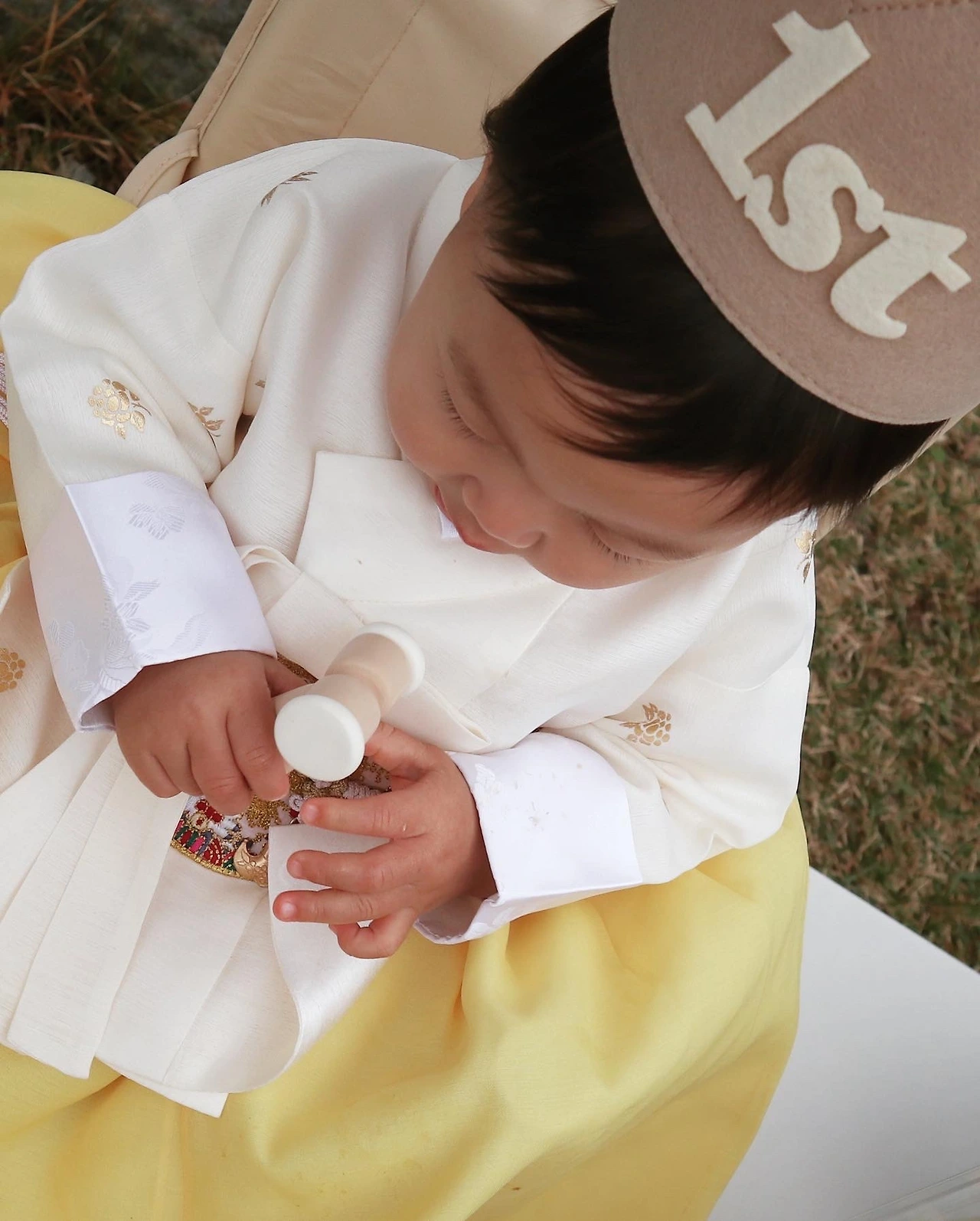 마미는 체력좋은 은유를 운동시키려고 마음먹었기에 돌잡이 전날부터 금메달을 권했지만, 연필을 제일 좋아하던 은유는 결국 앞에있는 금과 금메달을 재쳐두고 판사봉을 잡고 놓지않더군요. (아니, 먹어댔지요.)