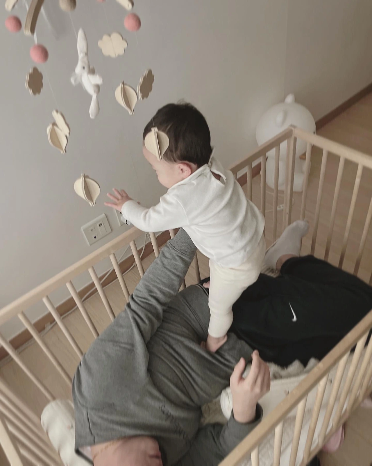 우리딸은 아빠를 밟고 침대를 넘으려한다 ?!