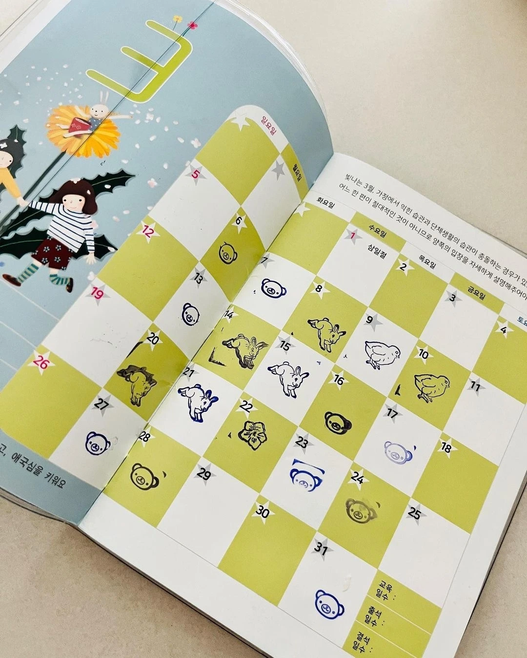딱 두번 결석하고 모두 동물도장 쾅쾅 찍어 온
