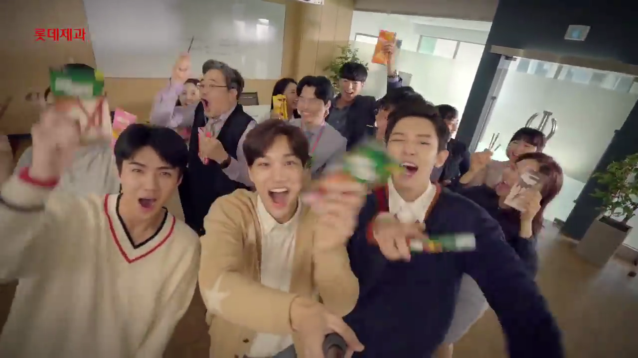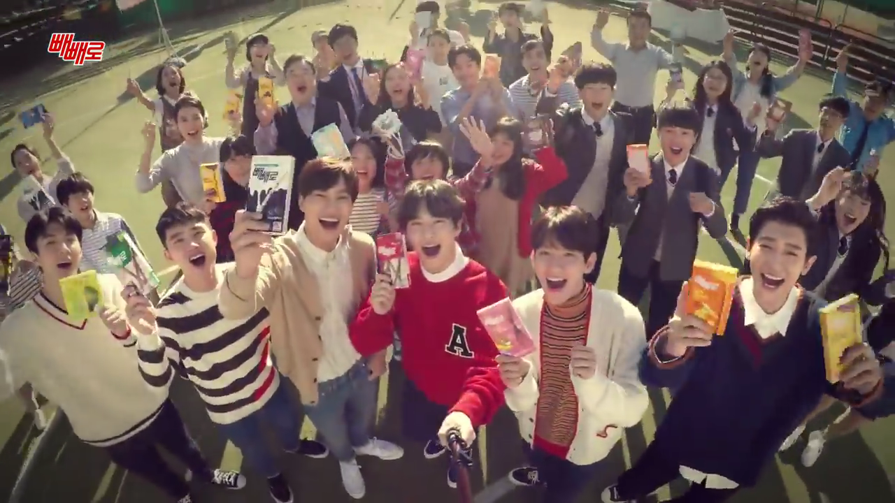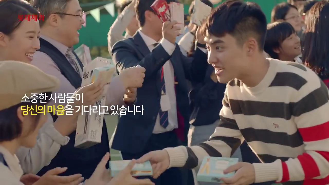 살짝 자잘한 이야기를 해봅시다. 카카오T에서도 내레이션에 잘 들리지 않는다는 이야기를 했는데, 빼빼로 광고 역시 내레이션에 집중이 되지 않습니다. 아이돌 콘서트 같은 곳을 보면 함성소리 때문에 음악이 안 들리잖아요? 빼빼로 광고도 역시 함성소리에 내레이션이 수장되고 말았네요. 사람들은 화면과 소리가 일치하는 것에 더 집중합니다. 화면에서는 엑소와 그 주변 인물들이 산만하게 빼빼로 들고 정신없이 흔들어대고 있는데 그것과 싱크가 맞는 '와아아아아' 소리만 들리지, 혼자 외로이 놀고 있는 내레이션에는 집중이 잘 안 될 겁니다.