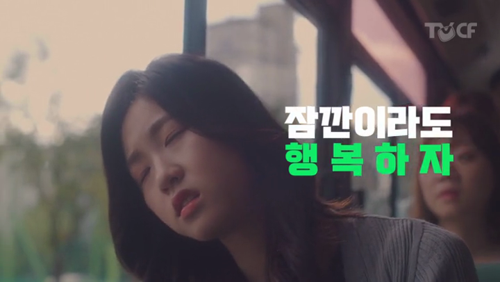 물론 광고 시리즈이기 때문에 메인 카피와 슬로건이 둘 다 들어갈 수 있습니다. 다만, 2개(직장인 편과 아빠 편)는 카피의 상황에만 맞고, 2개(엄마 편과 만찢남 편)는 슬로건의 상황에만 맞는다는 것이 조금 그렇군요. 엄마 편에서 아기가 잠에 빠져들어 시간이 굉장히 널널해졌으므로, 잠깐이 아니고 몇 시간 동안 행복할 수 있습니다. 이 때는 시리즈로 달릴 수 있어요. 만찢남 편에서 그 남자가 유부남이라는 걸 안 슬픈 상황에서도, 버스에서 내리기 전까지는 시리즈로 달릴 수 있습니다. 반면 직장인 편은 상사의 눈을 피해 잠깐 웹툰을 보는 것이고, 아빠 편도 아기가 아직 머리가 빵꾸똥꾸라는 점을 100% 활용해 잠깐 네이버 시리즈 콘텐츠를 즐기는 것이니, 슬로건처럼 '시리즈로 달리는' 건 불가능하지만, 카피처럼 '잠깐이라도 행복할 수는' 있습니다.
