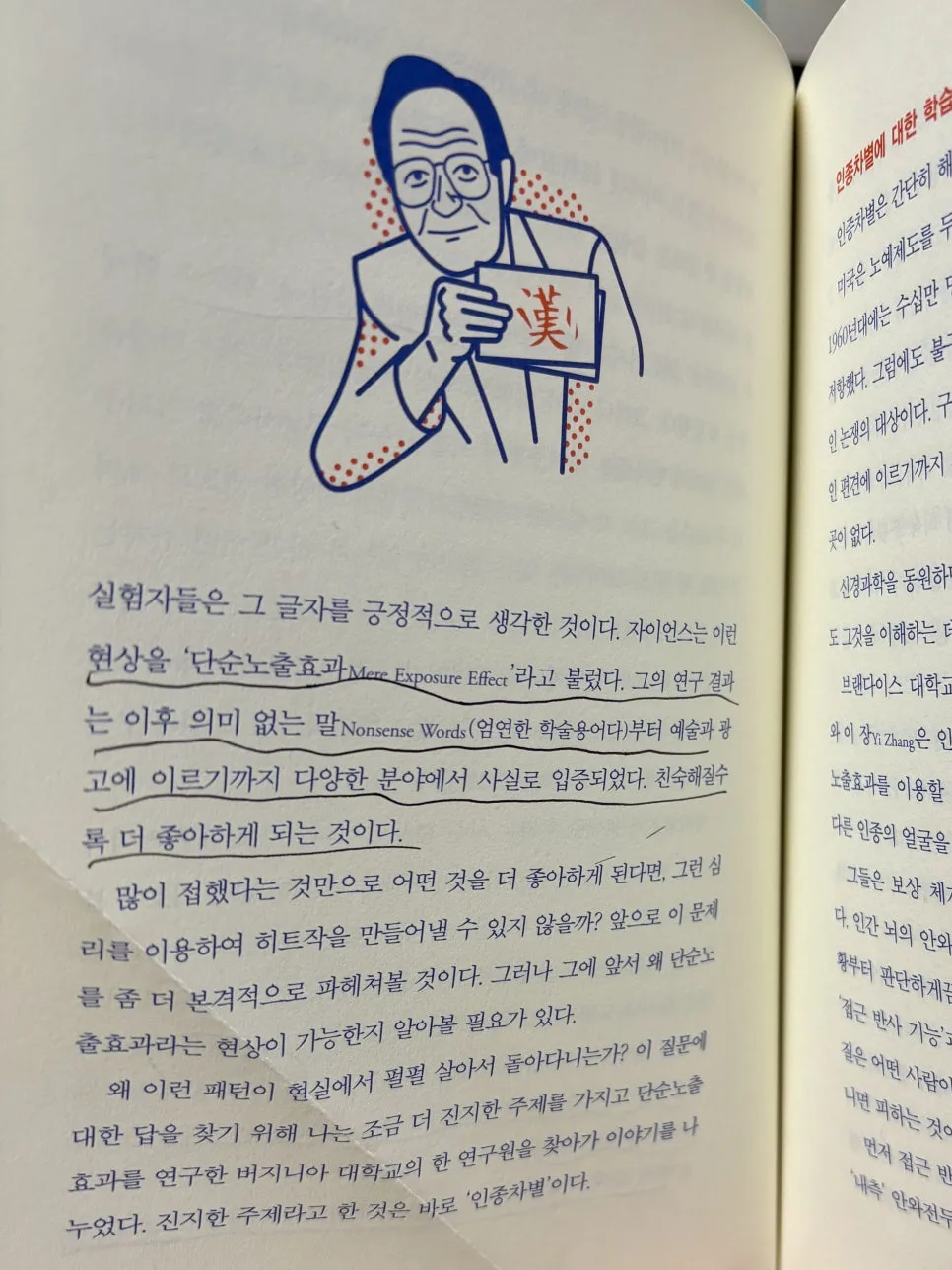 실험 결과 아무 의미가 없는 글자도 노출 빈도에 따라 친숙해진다는 연구결과가 나왔다. 자주 보면 친숙해져 그 글자를 긍정적으로 생각한다는 것이다.