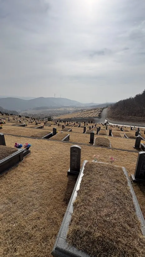 비록 조화지만 향기를 뿜어낼 듯 싱싱해 보였습니다. 공원묘지 관리인의 정성이 느껴집니다. 죽은 이를 위해, 남은 가족을 위해 정성껏 관리한 흔적이 잘 정돈된 잔디에서 느껴집니다.