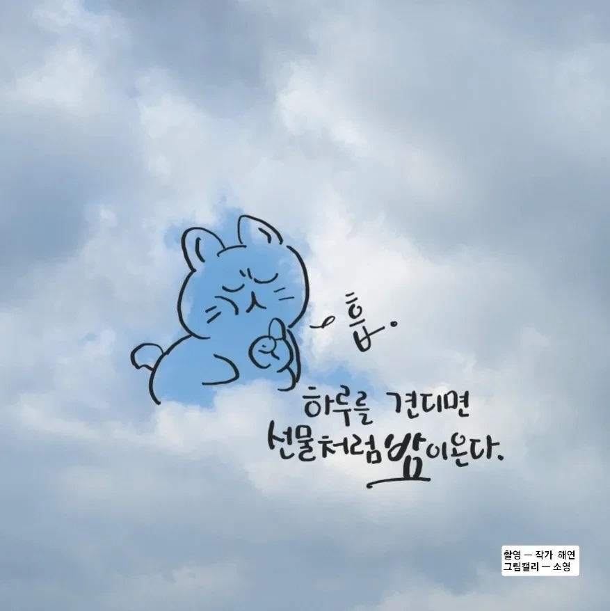 불편하고 힘겨운 상황이 오면 그 자리에 주저앉아 한탄하고 원망하는 대신 반정의 상황을 찾아내고, 작지은 빛이어도 환한 곳을 향해 너를 이끌어가는 모습이 참 보기 좋아.