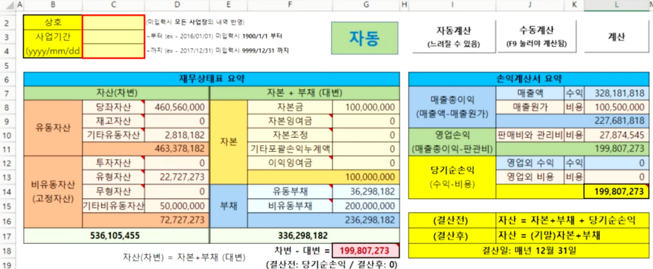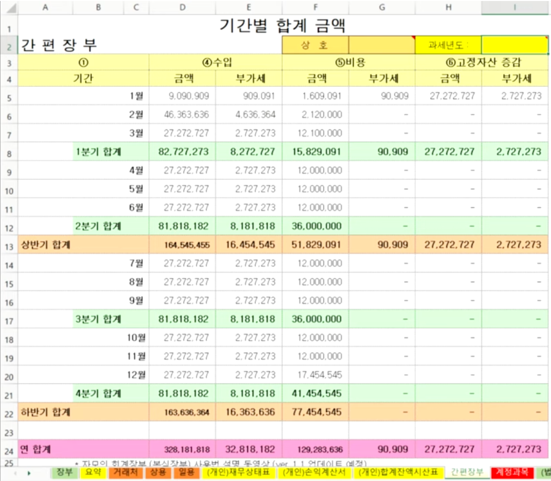 이 장부가 완벽하다고 말씀 드리기는 조심스럽지만 열심히 만들었고 이 장부로 회계 활동 중에 못할 건 거의 없는 것 같음.