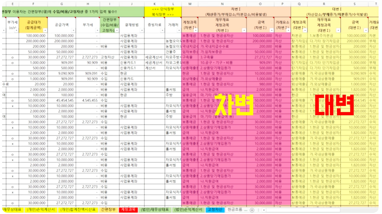 이걸 쓰려면 공부를 해야 되는데 복식장부 특성상 이번에 만든 이 장부만 공부해서 쓰는 건 아닌 것 같고