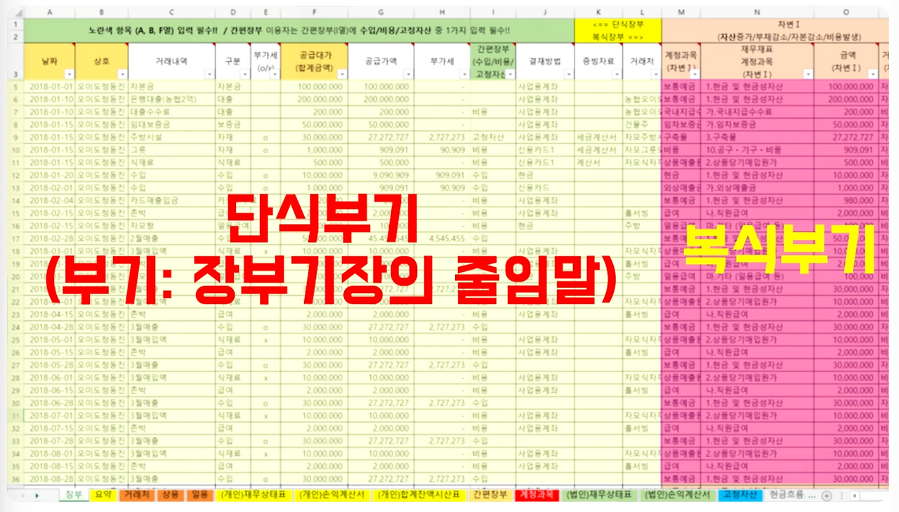 우측이 복식장부인데 이거는 회계를 좀 알아야 하지만 그렇게 어려운 건 아님.
