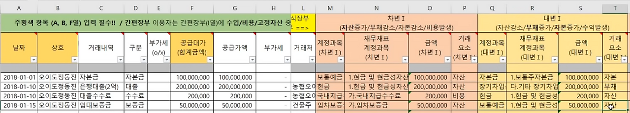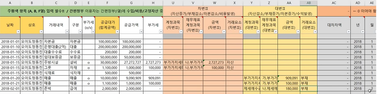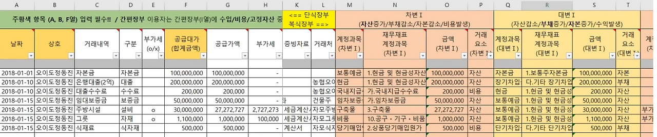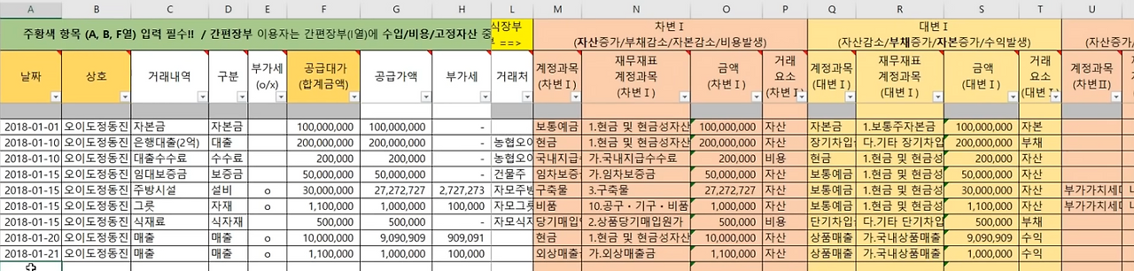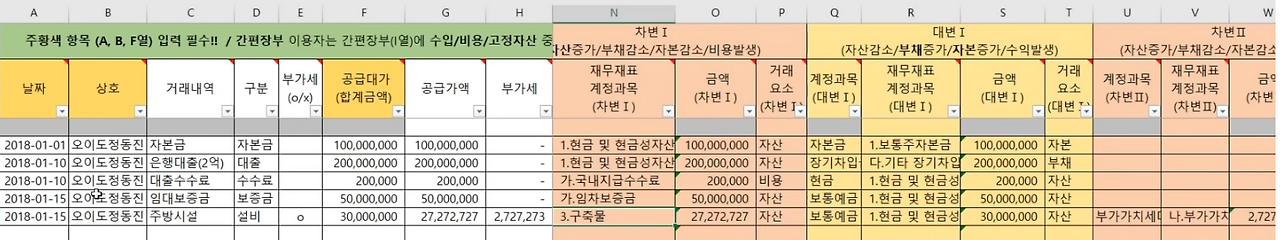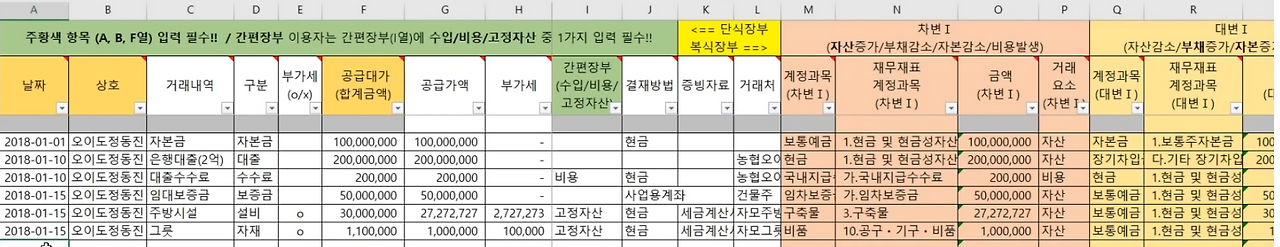 에 이어서 계속 복식장부를 작성하며 사용법을 익히겠습니다.