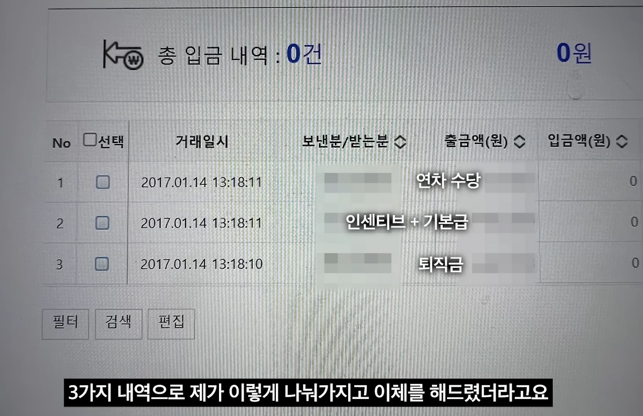 입금된 금액에 대한 전 직원 B씨의 반응