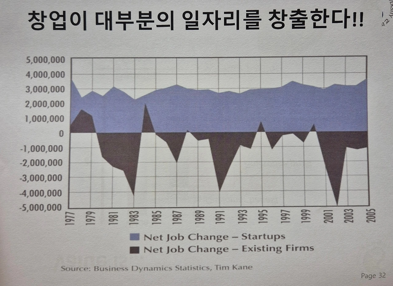 얼마 전 새롭게 배웠는데 스타트업은 기존 기업보다 훨씬 많은 일자리를 만들어낸다!