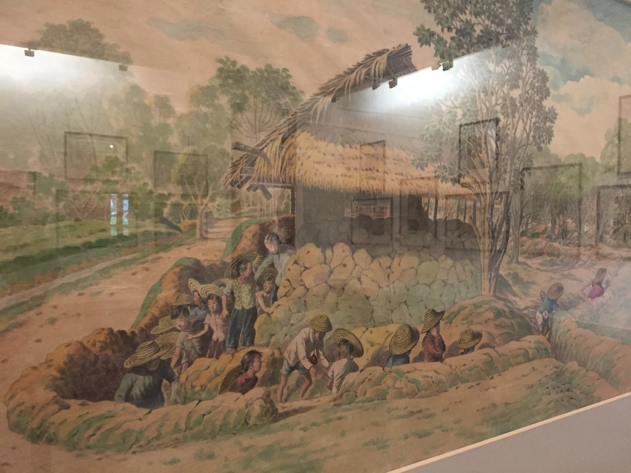 대부분의 작품들이 유리 액자 안에 담긴 채 전시되었던 터라, 스마트폰 카메라로 담은 사진들은 온통 반사광과 원치 않게 비친 내 그림자 때문에 현장의 감동을 조금도 담아내지 못했다. 1900년대 초반부터 융성했던 베트남 실크 회화는 특유의 섬세한 염색 기법을 요한다고 한다. 시간이 지나 누런 빛으로 바랜 실크 바탕에 가볍게 스며든 염료가 담아낸 담백함과 간결함은 한국의 수묵담채화를 떠올리게도 하지만, 작품이 묘사한 것은 시조의 한 구절을 연상케 하는 풍경화나 장식적인 동식물의 묘사와는 거리가 멀었다.