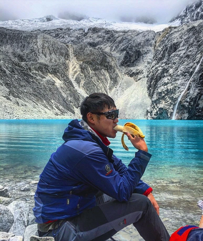많은 사람들이 69호수 트레킹을 고산 증상 때문에 중도 포기한다던데, 우리 일행(여자 4명)을 포함해서 버스 승객 30명 중 낙오자가 단 한 명도 없는 것이 놀라울 따름이었다. 인증샷을 찍기 위해 얼음이 녹은 차가운 호수에 들어가 포즈를 취했다. 그런 나를 보고 다른 외국인 관광객들도 사진을 찍으러 앞 다퉈 따라 들어왔다. 잠시 후 가이드 아저씨가 ‘빼액‘ 소리를 지르며 달려와 버스에서 호수에 들어가지 말라고 주의를 줬었는데 왜 말을 안 듣냐며 주동자인 나를 무섭게 혼냈다. (영어 잘 못해서 못 알아 들은건데 ㅠㅜ)