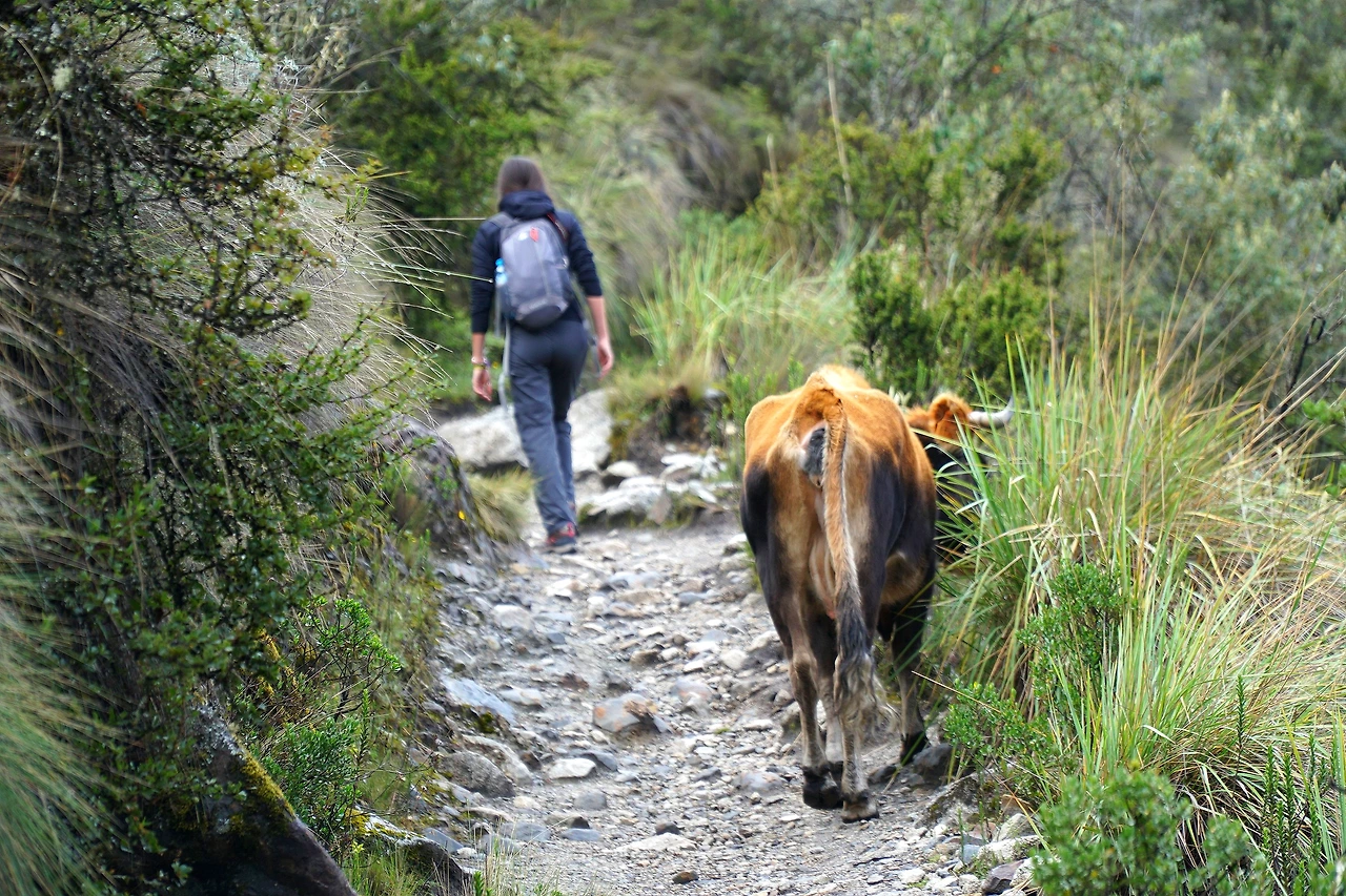 목적지인 ‘69호수’는 해발 4,500미터에 위치하고 있었다. 한라산이 1,600미터인 것을 감안해보면 엄청난 높이다. 왕복 10km에 대략 5시간 정도가 걸린다고 했다. 출발하기 전 고도를 확인해보니 시작점이 3,800미터 지점이다. 정상까지 고작 700미터 정도만 올라가면 된다고 생각하니 왠지 좀 만만해 보였다. 혹시나 고산으로 인한 두통이 올까 봐 최대한 숨을 천천히 고르며 한 걸음씩 정성껏 대지를 밟았다. 다행히 등산로는 원만했다. 넓은 평야에는 소들이 제각각 흩어져 한가롭게 풀을 뜯고 있었다.