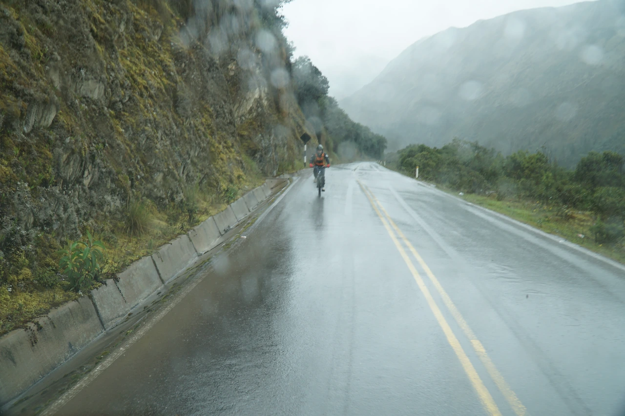출발할 때 그렇게 맑았던 하늘이 산 중턱을 넘자 갑작스럽게 회색빛 구름으로 뒤덮이더니 급기야 비까지 내렸다. 첫째 날은 안데스 산맥을 가르는 아찔한 도로 위에서 즐기는 자전거 라이딩이 메인이었는데, 나는 자전거 안장으로 전달될 엄청난 충격과 그로 인한 대형 참사를 고려해 결국 라이딩을 포기했다. 하지만 무서워서 하기 싫다던 친구들을 억지로 구슬리고 윽박질러 겨우 데려 와놓고 정작 나는 텅 빈 버스에서 두 다리를 뻗고 누워 있으려니 미안한 마음이 들었다.