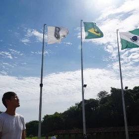 얼마지나지 않아 유리창에 큼지막하게 'FOZ DU IGUAZU'라고 적힌 버스가 플랫폼 안으로 도착했다. 우리는 당연히 버스가 브라질 이과수 폭포로 바로 갈 줄 알고 버스에서 멍 때리며 쉬고 있었는데, 갑자기 버스가 어딘 가에 멈추더니 기사가 우리보고 여기서 내려야 된다고 말했다. 밖을 보니 브라질 국기가 눈 앞에서 펄럭이며 쌈바춤을 추고 있었다.(알고 보니 국경이 바뀌어서 브라질 버스로 갈아타야 했다.)