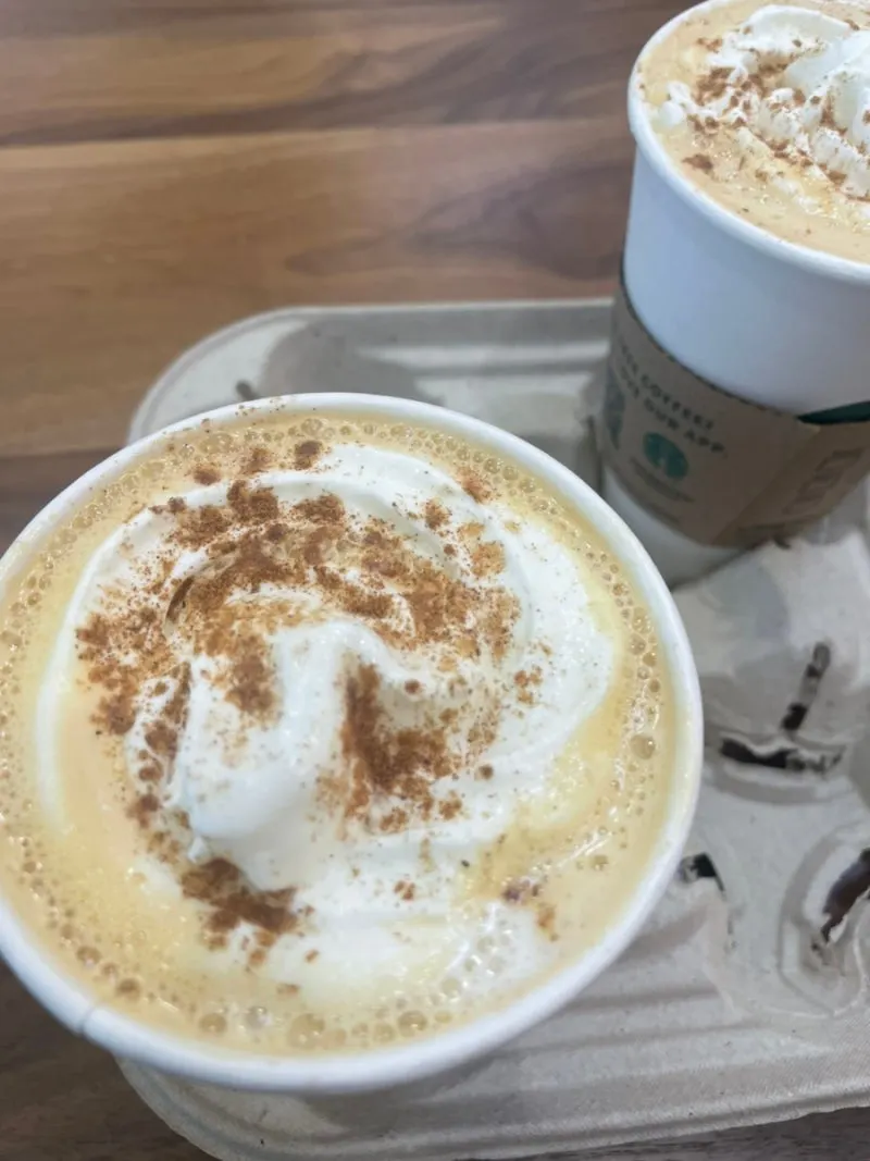 미국에서 가을이 시작되면, 펌킨 스파이스 라떼가 빠질 수 없다. “펌킨 스파이스 라떼를 마셔야 비로소 가을이 시작된다”는 말처럼, 그 분위기에 휩쓸려 한 잔을 주문해 보았다. 달콤하고 알싸한 향, 그리고 시나몬이 가득한 라떼 한 잔에 가을이 온전히 담겨 있었다. 비싸서 자주 마시지는 못하겠지만, 그 순간만큼은 이곳의 가을이 나에게 조금 더 특별해진 기분이다.