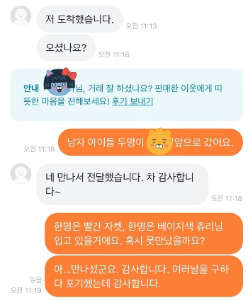 “내가 먼저 당근이세요?라고 말을 걸었지.”