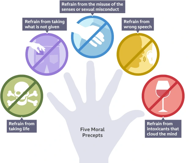 불가에서는 세상에 이렇다 할 것이 없다고 (= 無常苦無我, 무상고무아) 말하고 있지만, 그럼에도 불구하고 지키라는 다섯 가지 계율이 있다. 한자로 쓰면 오계(五戒)라고 한다. 오계는 한국인 대부분이라면 어디선가 들어봤음직한 내용이다.
