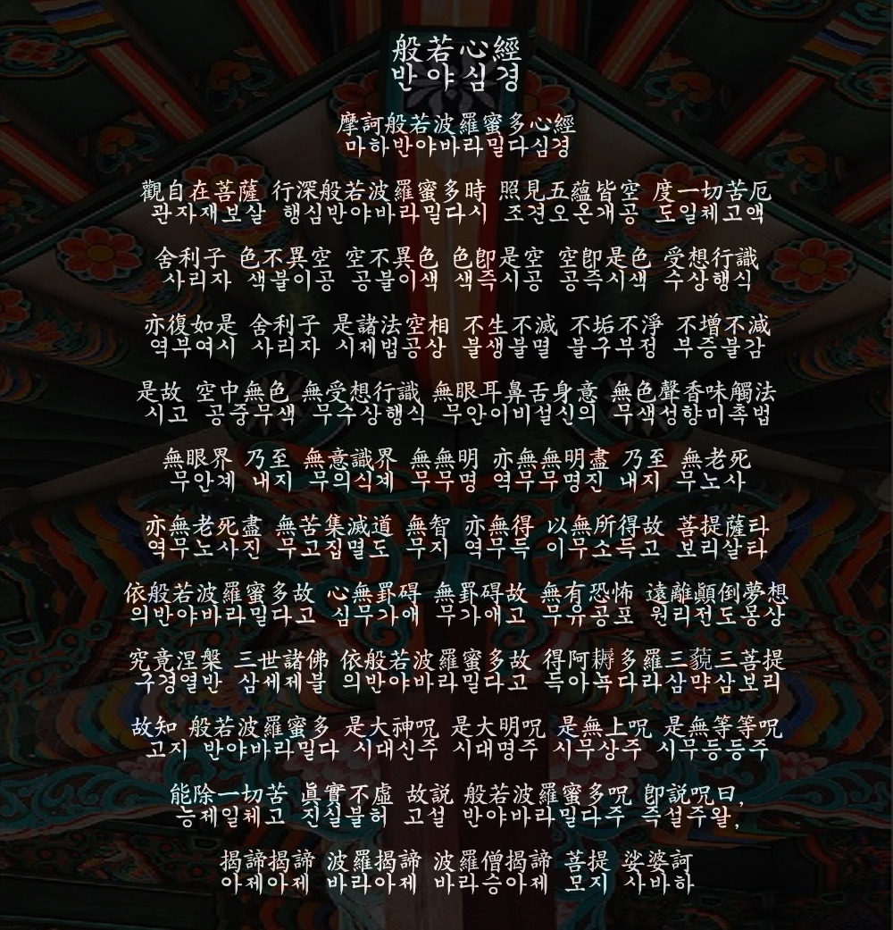 아우~ 색즉시공 공즉시색 하니까 반야심경 땡긴다. 법륜스님이 해설 해 주시는 반야심경 강독 듣고 내용이 너무 좋아서 떨리고 설레기까지 했는데. 달리 불교의 제 1경전이 아니구나 싶었다. 수요법회에 참가하며 반야심경을 봉독하면 그 때의 그 설렘이 기억나기도 한다. 내 삶을 좀 더 가볍게 만들어주는 원동력 중에 하나이기도 한 반야심경. 초기경전임에도 불구하고 대승불교 소승불교 상관없이 제일 먼저 읊는 데에는 이유가 있을터. 구관이 명관. 이참에 한 번 더 읽으면서 글을 마친다.
