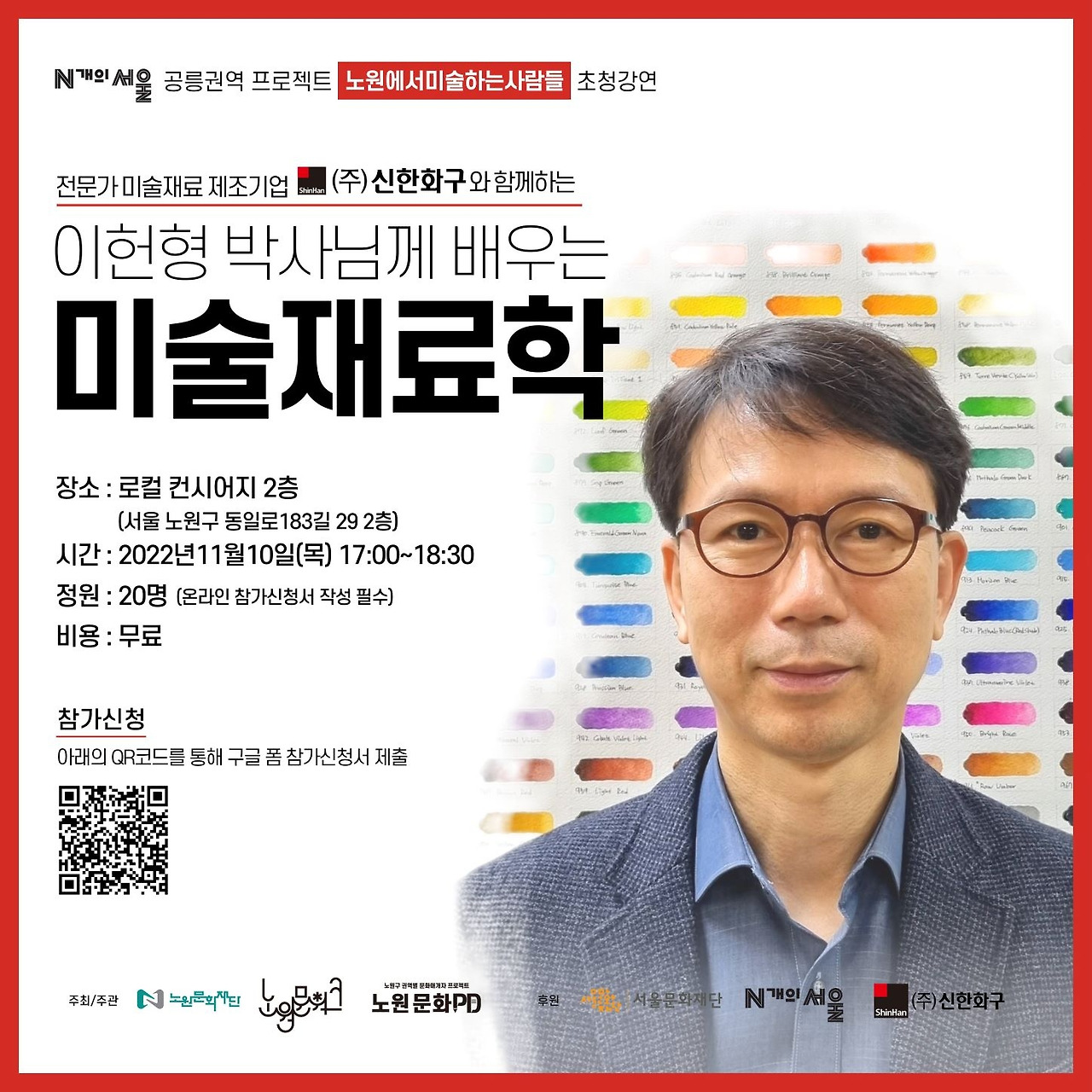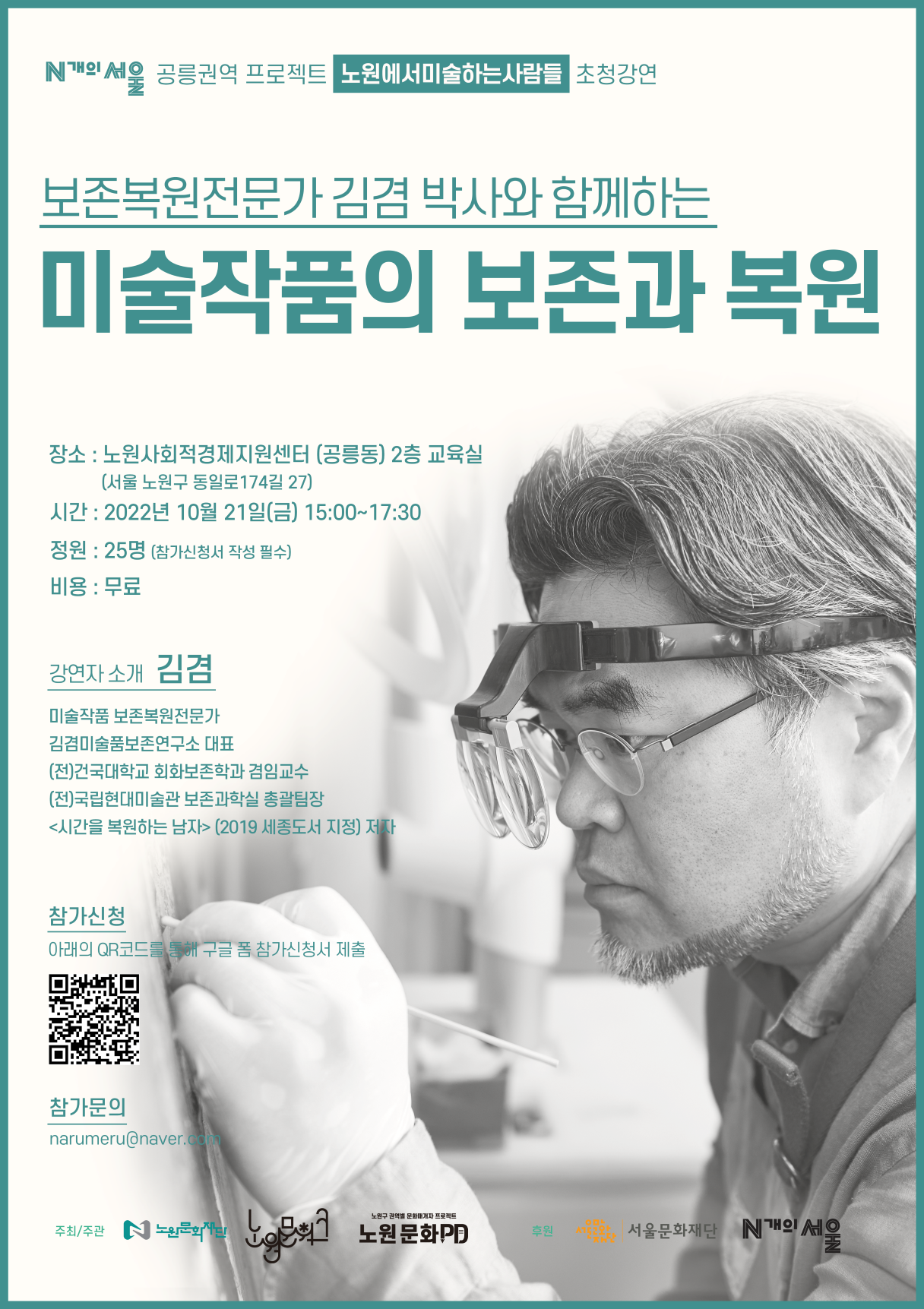 노원왓수다 노원 문화PD 2기 공릉권역 프로젝트인 <노원에서미술하는사람들>(이하: <노미사>)은 지난 10월과 11월에 걸쳐 <미술작품의 보존과 복원> 그리고 <미술재료학> 강연을 개최하였다.