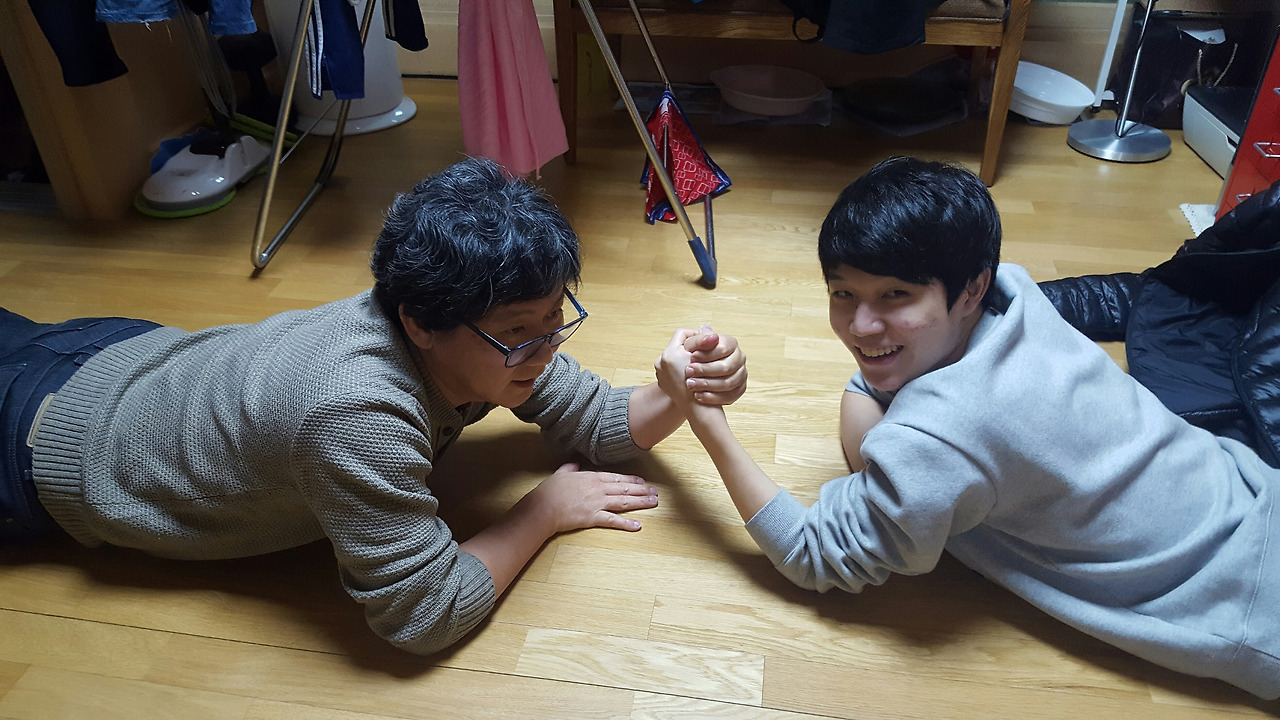 수능 끝난 아들의 손을 감싸 쥔다.