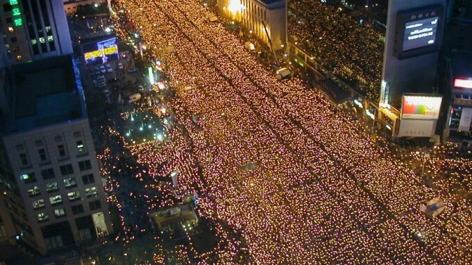 수백만의 시민들이 광화문에서 손을 잡았다.