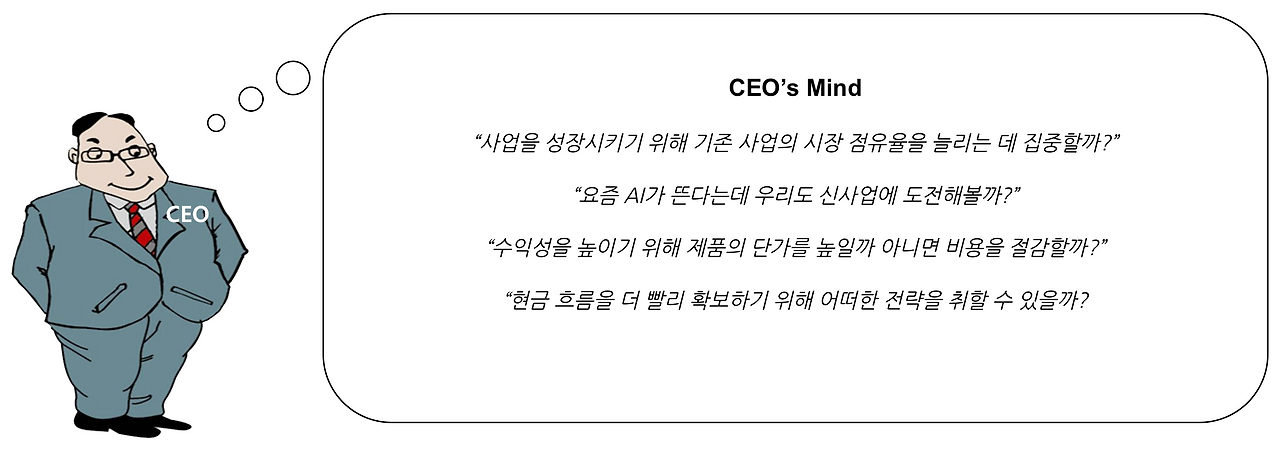 비즈니스 세계에서는 사업을 계획하는 "문제 해결" 업무와 실제 제품이나 서비스를 만드는 "실행" 업무가 있다. 전체 업무 중 실행은 95%를 차지하고 문제 해결은 불과 5%에 해당하지만, 이는 나머지 95%의 가치를 만들어내는 일이기도 하다. 그래서, 어느 조직에서나 전략 부서는 선두의 자리에서 앞으로의 비전을 제시하기 위해 누구보다 빠르게 많은 정보를 습득하여 논리적으로 문제 해결을 하고 효과적으로 전달하는 사람들이며, 이는 많은 사람들이 CEO에게 도움을 주는 전략 전문가가 되고 싶은 이유이기도 하다.