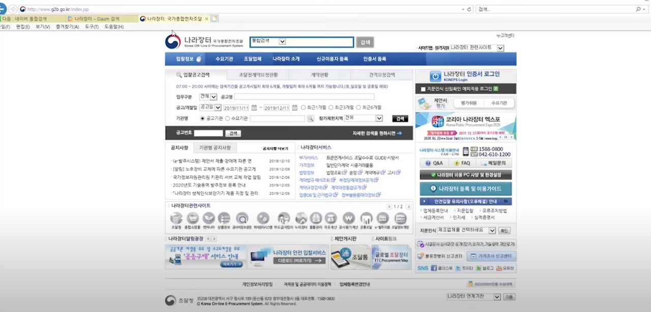 그런데 이런 정부 주도의 B2G 사업을 운영하는 조달청의 나라장터(https://www.g2b.go.kr) 웹사이트를 방문해보니, 도대체 클라이원트가 무엇을 하려고 하는지 단번에 이해할 수 있겠더라고요.