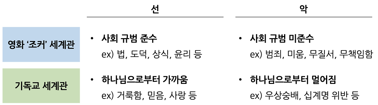 영화 '조커'와 기독교가 정의하는 선과 악의 기준은 아래와 같다.