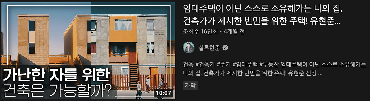 조승연 작가만큼 '유현준 교수'의 유튜브 채널을 자주 챙겨보는데요.