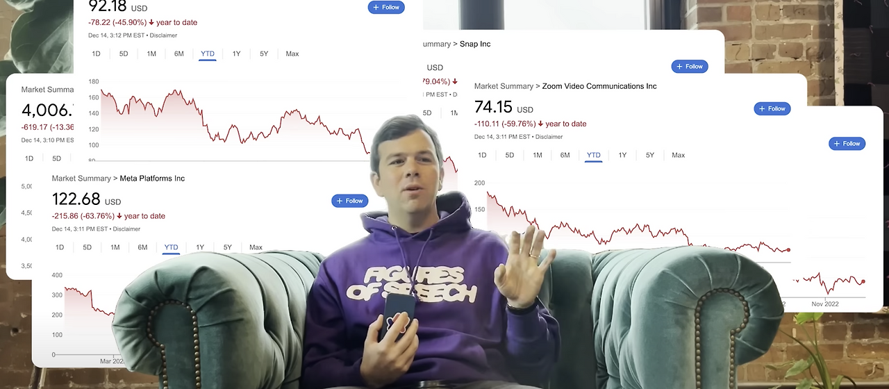 최소 영상을 올리는 당시만 해도 (2022년 12월) 아크의 유저 수는 급속도로 성장하고 있습니다. 마치 누군가 인위적으로 그래프를 그린 것처럼 매우 이상적인 모습이죠. 하지만 요즘 S&P 500 혹은 빅테크 기업의 주가를 보면 상황이 정반대입니다.