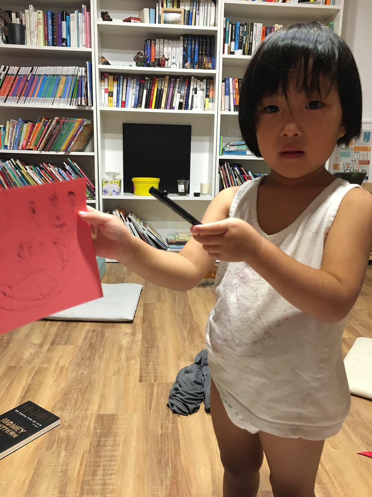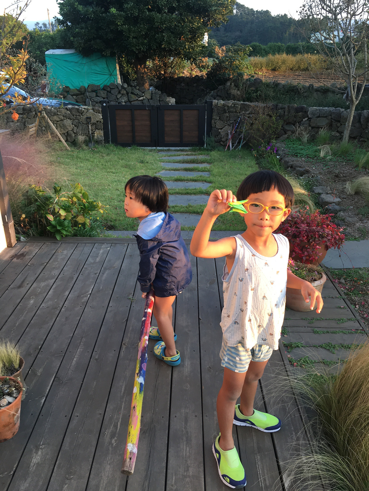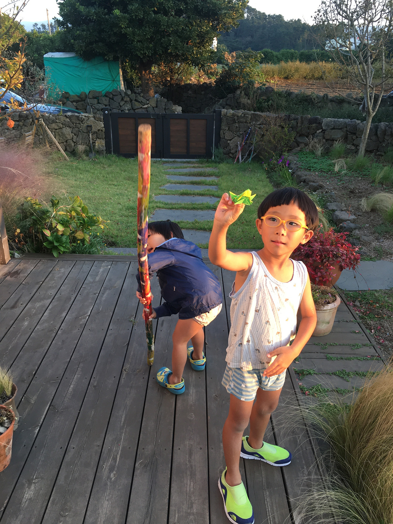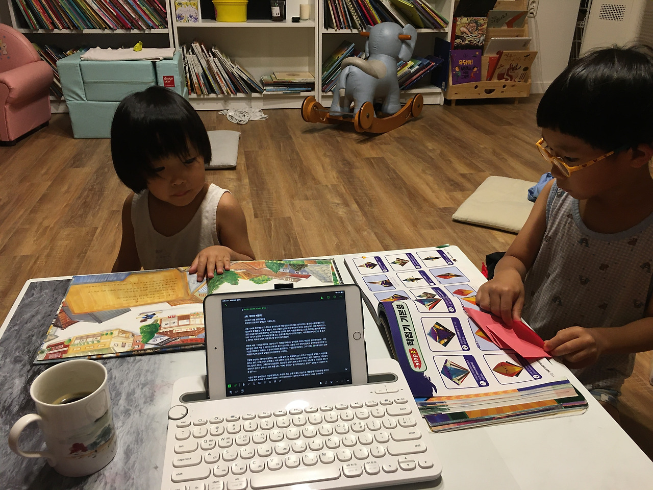 생선을 다 손질해서 냉동실에 넣어놓고 이제 잘 시간이 왔다. 내일은 우도에 가기로 한날. 컨디션이 중요한데 둘 다 영 잘 생각이 없다. 그래, 아침에 늦게까지 자면 되지 뭐. 졸리면 이야기해달라고 하고 나는 일기를 쓰고 은우는 종이접기, 유민이는 그림을 그렸다. 셋이서 각자 할 일을 하니 나름 괜찮다. 한 시간가량을 그렇게 있다가 결국 둘 다 졸리다고 해서 방에 들어갔다. 매일 같이 자기 싫다는 아이들과 전쟁을 하는 게 일인데 그래도 자기 전에 각자 시간을 주니 재우는 게 한결 수월하다.