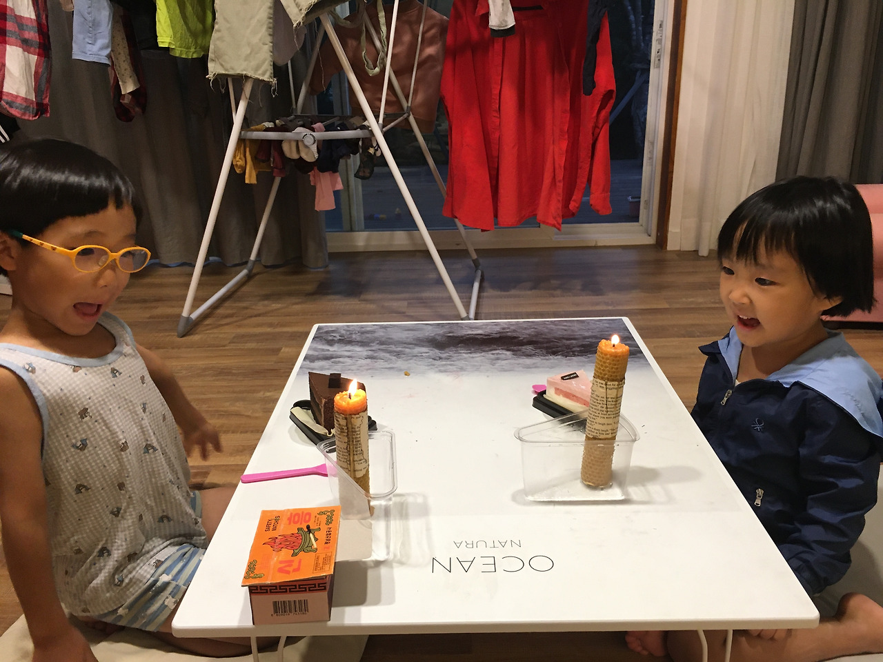 케이크를 준비하고 막상 파티를 하려는데 집에 케이크 초가 없다. 결국 양초를 하나씩 앞에 두고 노래를 불렀다.