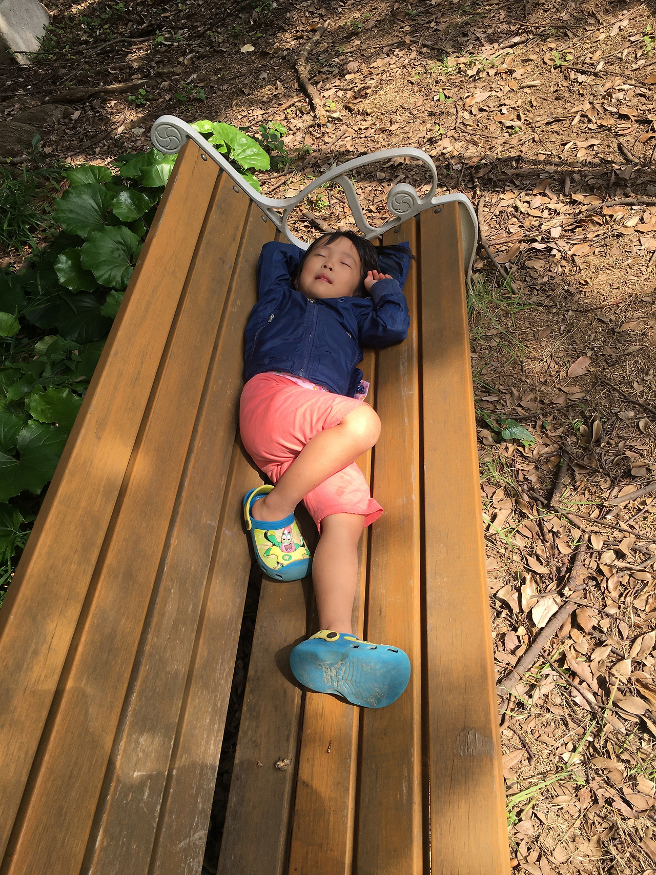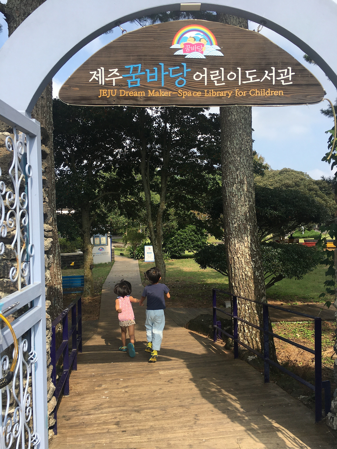 날씨는 화창했지만 꿈 바당 도서관 쪽은 그늘이 많아 약간 쌀쌀했다. 아이들 겉옷과 유민이 긴바지를 챙겨가길 잘했다. 은우는 도서관에 도착하자마자 조밤을 주으러 다녔다. 유민이는 놀이터에서 좀 놀더니 누가 베짱이 아니랄까 봐 벤치에 드러눕는다. 저 멀리서 은우가 열심히 조밤을 줍는 모습을 보며 벤치에 앉아서 유민이랑 조밤을 까먹었다. 조밤은 은우가 참 좋아하는 간식인데 나는 오늘 처음 먹어봤다. 생각보다 달달하니 맛있었다. 우리 애들은 도시에서 어린 시절을 보낸 나와는 달리 자연 속에서 자라는 것 같아 흐뭇했다.